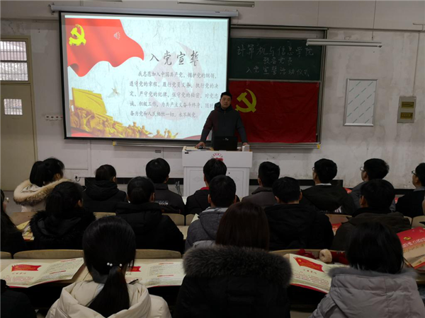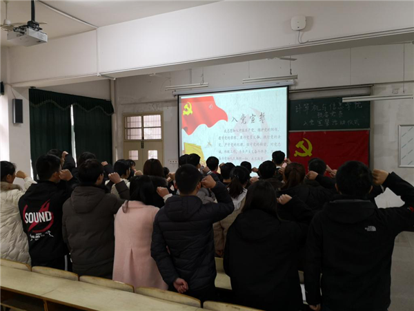 仪式在庄严的国际歌声中拉开帷幕,江伟宣读了best365官方网站登录入口党委关于批准发展预备党员的文件,并代表学院党委对本次新发展的党员表示热烈祝贺,并为新党员代表发放政治生日提醒卡。他指出党员有两个重要的生日:第一是自然生日;第二是政治生日,即入党日。他对全体新党员提出了四点要求:一是要注重党性修养,增强党员意识;二是要充分发挥党员先锋模范作用,争做群众表率;三是要加强学习,特别是党建知识学习,在学习中提升自己的境界;四是在享有党员权利的同时要切实履行党员各项义务。