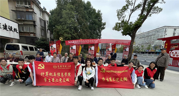 10月14日,我院学生第二、第三党支部与黄梅剧艺术学院直属党支部的学生党员共赴安庆市大观区花亭北村社区敬老院送温暖,陪伴老人欢度重阳节。