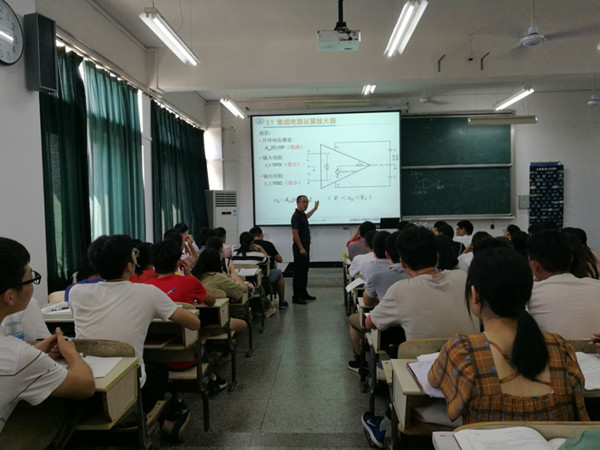 课上,丁老师首先复习了上次课的内容,加深学生对知识点的印象。接着,他用几个问题引出了所要学习的新内容,耐心讲解,及时提问,用幽默风趣的语言将复杂难懂的电路图知识变得有趣起来。通过丁老师扎实的专业技能和良好的教学方式,同学们不仅得到了技能上的提高,更对模拟电子技术这门学科产生更多的热情和学习积极性。
