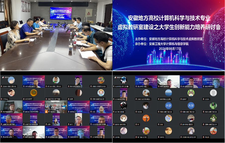 为深入贯彻党的二十届三中全会精神,统筹推进科技、教育与人才战略支撑工作,着力提升计算机类本科生人才培养质量及其创新创业能力,8月17日,安徽工程大学best365官方网站登录入口组织举办了“安徽地方高校计算机科学与技术虚拟教研室建设之大学生创新能力培养研讨会”。来自安徽农业大学、淮北师范大学、bat365在线平台登录、合肥师范学院、宿州学院、滁州学院、黄山学院、皖西学院、池州学院、铜陵学院、巢湖学院等高校计算机学院负责人、专业负责人或骨干教师共50多位参加了此次研讨会,会议由安徽工程大学计算机科学与工程系副主任刘进主持。best365官方网站登录入口副院长吴海峰和数字媒体技术专业教师艾列富应邀参加。