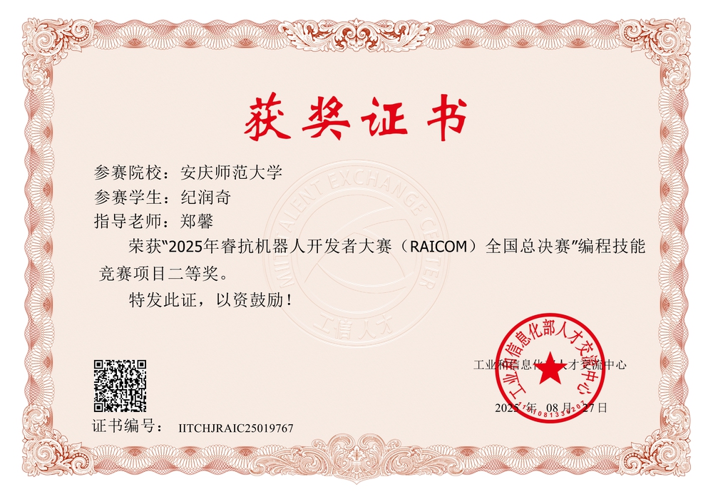 best365官方网站登录入口高度重视学生实践创新能力的培养,深入贯彻中央八项规定精神学习教育期间,学院围绕学生实践创新能力提升开展了专题调研,持续优化课程体系,加强编程与开发技能的专项培训,并加大对学科竞赛的支持力度。学院通过组建指导教师团队、举办模拟赛等活动,积极营造"以赛促学、以赛促教、以赛促创"的浓厚氛围。今年,学院报名参与睿抗机器人开发者大赛的人数持续增长,展现了师生们勇于挑战、追求卓越的精神风貌。此次在睿抗机器人开发者大赛中的优异表现,是学院深化教学改革、推进创新人才培养的生动体现。未来,best365官方网站登录入口将以此为契机,继续深耕机器人技术与相关专业建设,激励更多学子在国家级竞赛舞台上绽放光芒,为培养更多高素质、创新型信息技术人才不懈奋斗!(撰稿:郑馨;审核:肖之进)