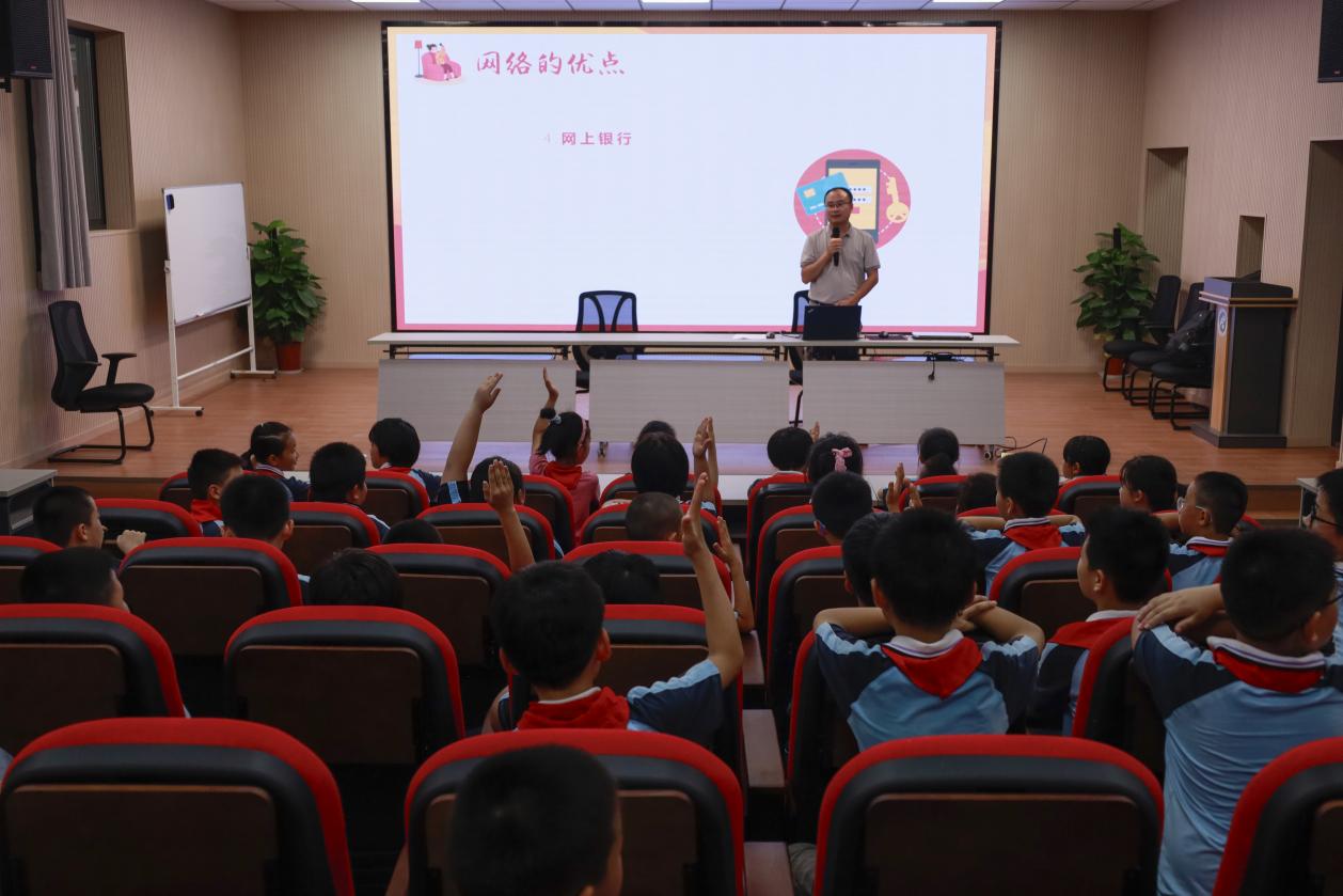 陈春生以生动有趣的方式引入主题,通过展示一些贴近小学生生活的网络场景,迅速吸引了小朋友们的注意力。他指出,在互联网飞速发展的今天,网络已成为大家学习、生活中不可或缺的一部分,但网络安全问题也日益凸显,小学生作为网络的频繁使用者,更需要掌握基本的网络安全知识,保护自己免受网络风险的侵害。