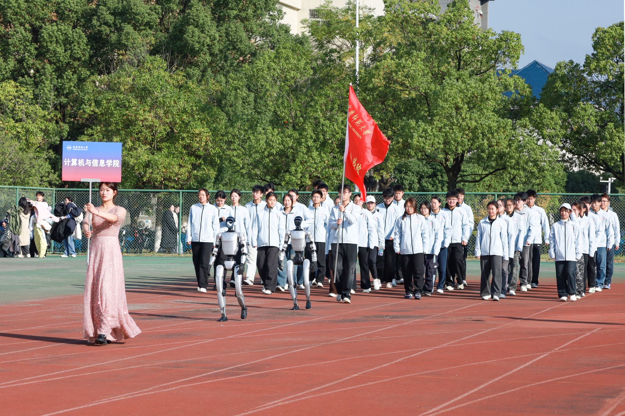 赛前,学院从教学实践基地邀请机器人亮相开幕式,具有学院人工智能特色的助力形式引发广泛关注,相关视频被大量点赞转发,成为近期宣传视频“爆款”,成功营造了热烈的赛事氛围。