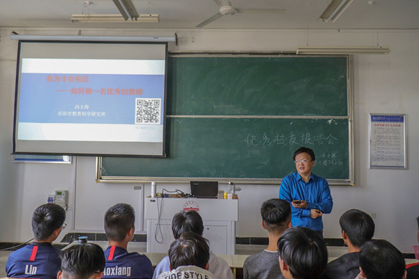 为进一步加强创新创业教育工作,激励广大在校大学生努力学习,励志成才。11月 15 日下午,best365官方网站登录入口优秀校友事迹报告会在A405室举办。best365官方网站登录入口 1995 届优秀毕业生、阜阳市信息技术教研员冯士海校友,应邀为我院学生做了题为“有为才有位——如何做一名优秀的教师”的报告会。报告会由刘奎副院长主持,19级计算机二班与计算机七班100余名学生聆听了优秀校友的事迹报告。