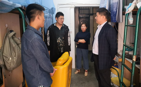 每到一间宿舍,江伟和学工组辅导员亲切地询问同学们的生活、学习、爱好等各方面的情况,了解学生的困难和需求,征求他们对学院教育教学、学生管理、党建工作等方面的意见和建议。同时,他嘱咐同学们要以宿舍为载体,结合学校和学院开展的“文明寝室”评比活动,保持良好的寝室环境,创造舒适的学习生活氛围,培育具有特色的寝室文化,促进同学们共同成长。尤其在2017级宿舍,面对教师资格证、四六级、考研等学习任务,江伟强调同学们要有学习的压力和紧张,要提前规划,树立目标,要把时间和精力集中到学习上来,要有收获和成绩。走访过程中,江伟心系后进生,特别看望了2017级数字媒体技术2班的张同学。江伟书记仔细了解了他的家庭情况和平时的学习生活情况。他指出大三是很关键的学年,要合理规划好这时间,如果准备考研就要开始认真备考;如果准备工作就要多学一些专业的技能,同时他希望张豪同学能多与老师交流,努力学习。