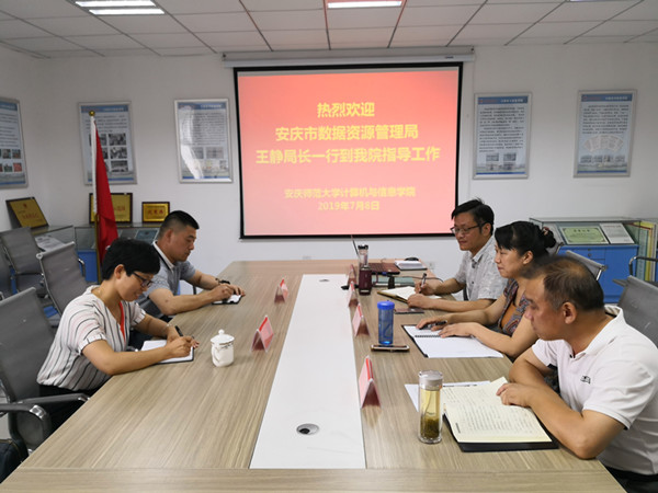7月8日下午,安庆市数据资源管理局局长、安庆市筑梦新区副主任王静一行到bat365官网best365官方网站登录入口调研,就深入开展校地合作进行了交流,学院党政班子成员参加了座谈。