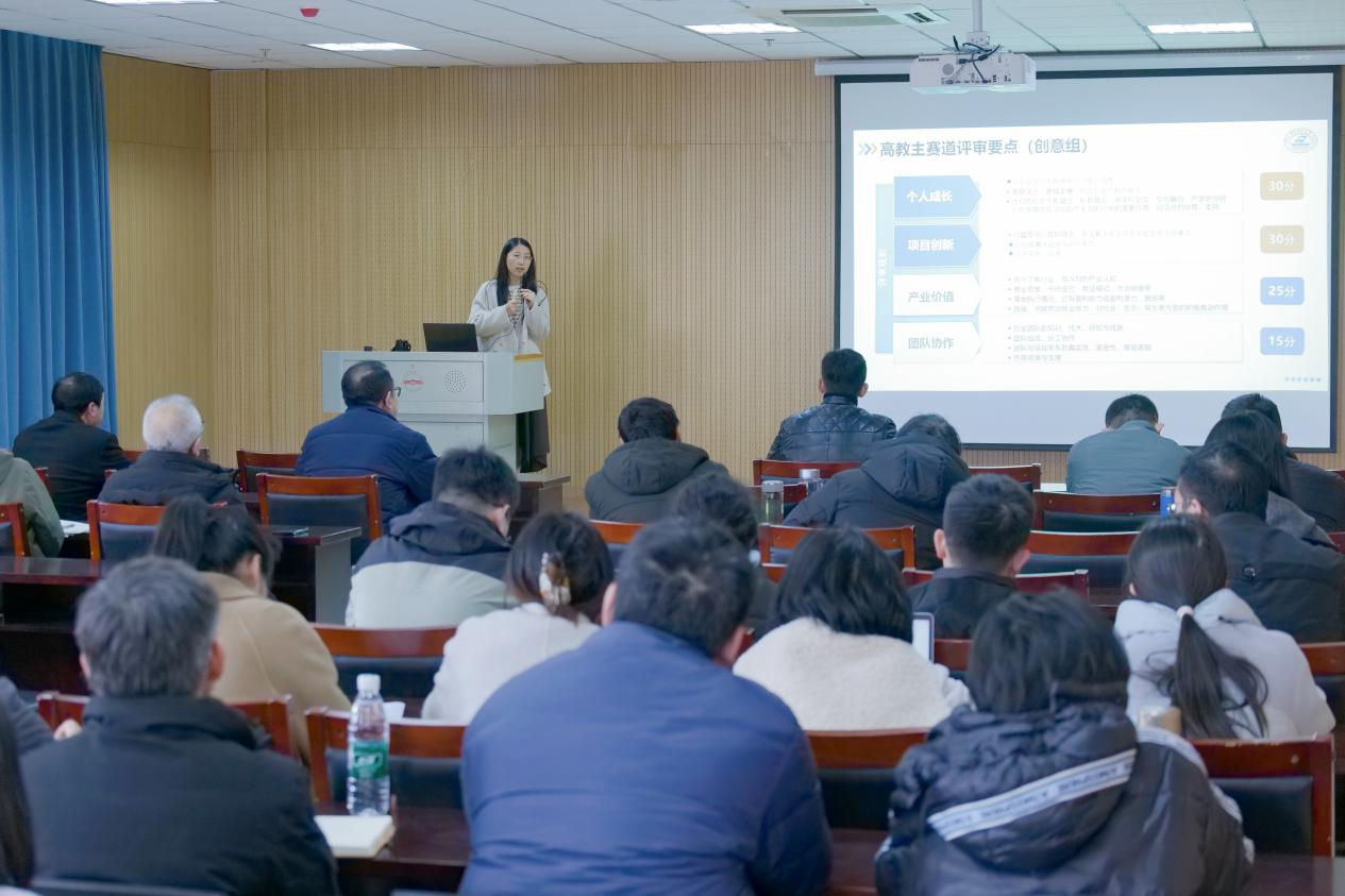 会上,朱盈盈博士围绕中国国际大学生创新大赛的备赛全流程,聚焦核心环节进行了系统阐述与深度解读。她首先梳理了大赛的赛事背景、办赛初衷与整体定位,明确了参赛范围与认知框架,并以“顶天”“立地”四字箴言点明优质选题方向。随后, 朱博士精准解读了高教主赛道、“青年红色筑梦之旅”赛道及产业赛道的评审规则与考察重点。在案例剖析环节,她结合往年金奖项目,拆解其在创新性、可行性、社会价值和团队协作等方面的成功要素,系统阐述从备赛到国赛的完整历程。最后,朱博士以一系列的“路线图”,引导导师生逐步明确从组队、选题、材料撰写到现场答辩各阶段的关键任务与实用技巧,为备赛之路提供了具体而有力的指引。