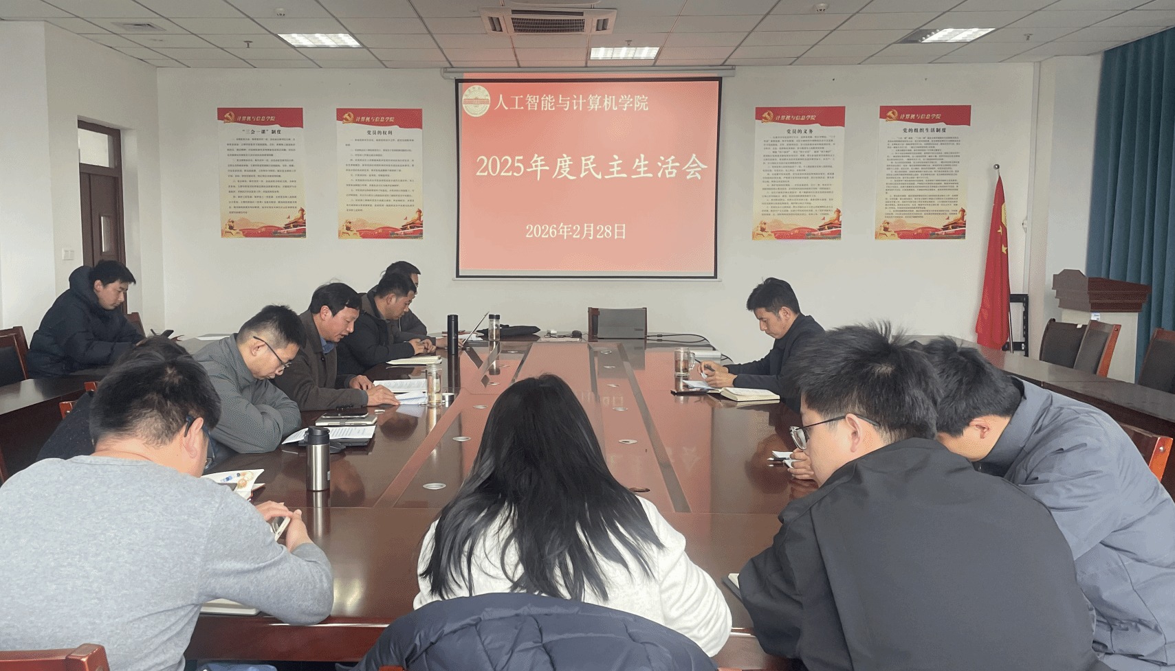 学院党委对开好本次民主生活会予以高度重视,会前班子成员通过集中研学与个人自学相结合的方式,系统深入学习习近平新时代中国特色社会主义思想,深刻领会党的二十大及历届全会精神,并围绕党建引领高质量发展暨‘十五五’发展规划”主题组织开展专题研讨。班子成员坚持开门纳谏,广泛征求师生意见建议,深入开展了谈心谈话,认真撰写对照检查材料,为高质量召开民主生活会奠定了坚实思想基础和工作基础。