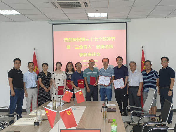 9月8日下午,best365官方网站登录入口在L楼318会议室召开庆祝第三十七个教师节暨“三全育人”最美老师表彰座谈会。学院领导班子、受表彰的教师参加了此次会议,学院党委副书记江晋剑主持了会议。